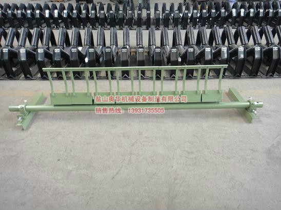 Alloy rubber cleaner installed in the head of the conveyor roller and the drum at the lower center of the horizontal 15 ° -30 ° within the smooth face of the alloy rubber cleaner with the flexibility of the rubber body itself, can automatically adjust the scraper and the conveyor conveyor The contact pressure between the tapes, and the cushioning effect of the rubber body.